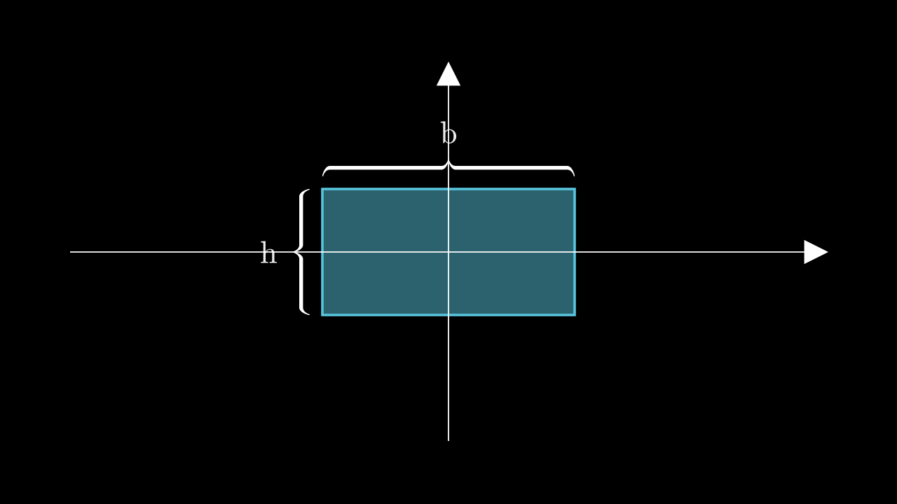 Consider a rectangle of width b and height h, centered at the origin (0,0), with sides aligned to the axes. The integration limits are: x from −b⁄2 to b⁄2, and y from −h⁄2 to h⁄2.